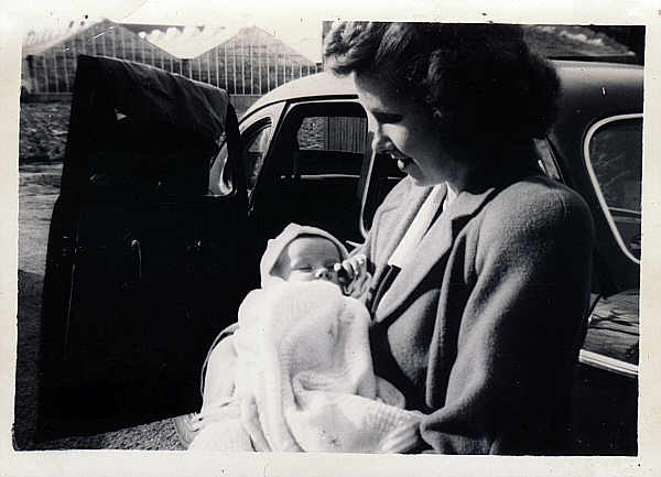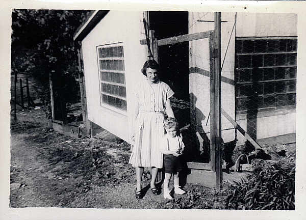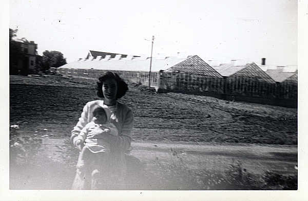 louise&tom.jpg - Helen's sister Louise with her baby boy in the yard at the Goetz's.