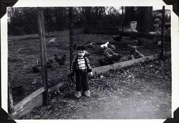 ralph&chickens.jpg - Back before the City decided we couldn't keep livestock here anymore the growers here had the basic compliment of chickens, hogs, goats, horses, cattle etc. Farm kids knew well and good where chicken and bacon came from :)