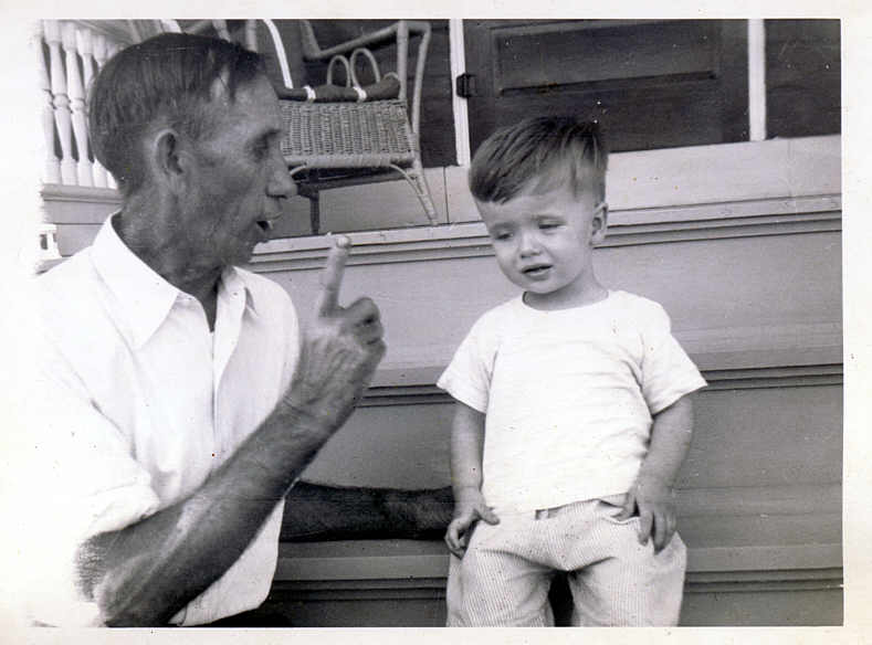 will&ralph.jpg - Will Goetz teaching his boy right from wrong. Ralph Goetz (now in his 50's) grew up to be a fine man. The right mix of love and discipline makes all the difference :)