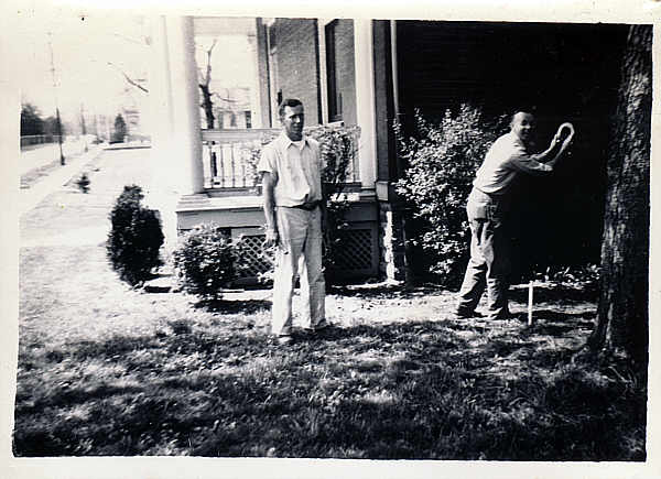 ed&herb.jpg - 40's Who says it's all work and no play? Pitching horseshoes was a popular sport amoungst the men folk here :)