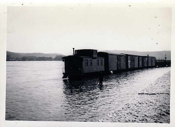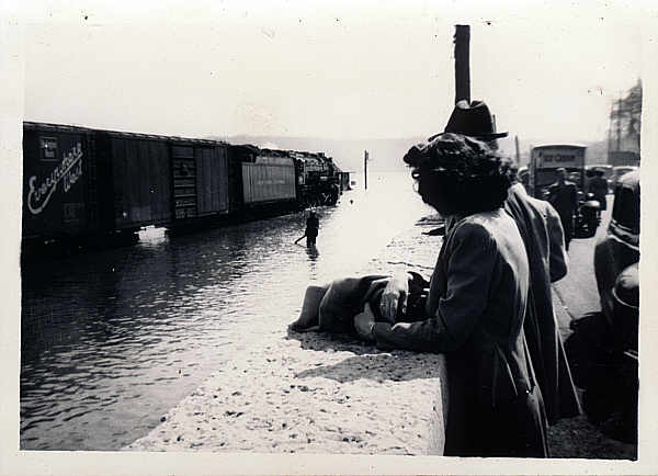 flood01.jpg - 40's A grower is always well aware at how much at the mercy of nature we are. These two pics show the railraod tracks in Winton place. This can't be the 1937 flood since the woman (Norma Goetz) in the second pic would have been much younger if this were taken in 1937. Nature can be both giver and taker in our business as evidenced in the drought of 1999. Garden stores and farmers alike suffered huge losses in that drought.