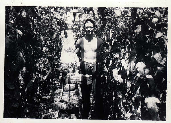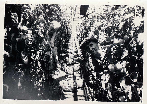 lestertomatos.jpg - Lester Goetz, Helen's brother, searching through the vines for the ripe ones ready for market.