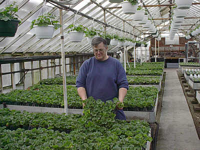 - Bob Lepere, Head grower & general manager. Shown here with some of his 2006 geranium crop. (more bob) |